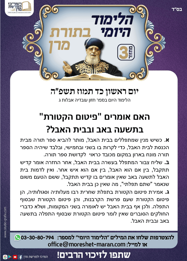 היום נלמד האם אומרים "פיטום הקטורת" בתשעה באב ובבית האבל?