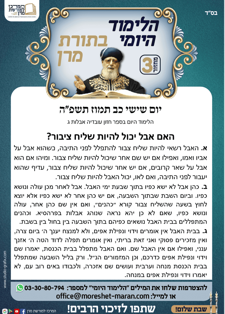 האם אבל יכול להיות שליח ציבור? הלימוד היומי בתורת מרן