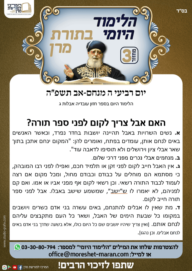 "הלימוד היומי בתורת מרן" נלמד מידי יום ע"י עשרות אלפים ברחבי הארץ והעולם, הצטרפו ללימוד של היום – יום רביעי ה' מנחם אב ה'תשפ"ה
