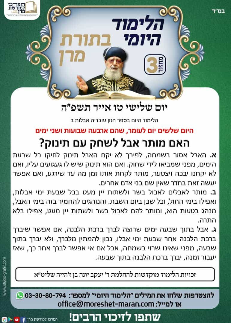 האם מותר אבל לשחק עם תינוק? הלימוד היומי בתורת מרן