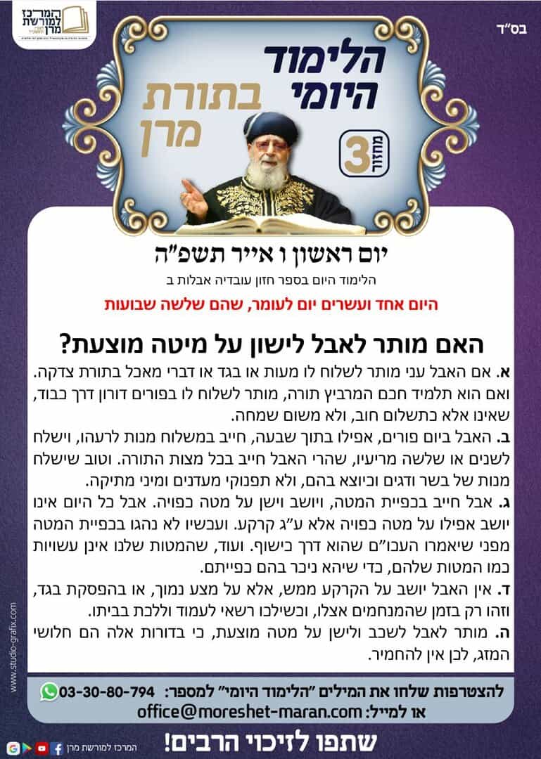 היום נלמד האם מותר לאבל לישון על מיטה מוצעת ?