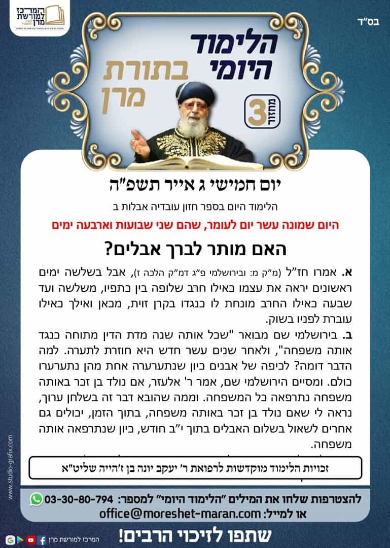 האם מותר לברך אבלים? הלימוד היומי בתורת מרן