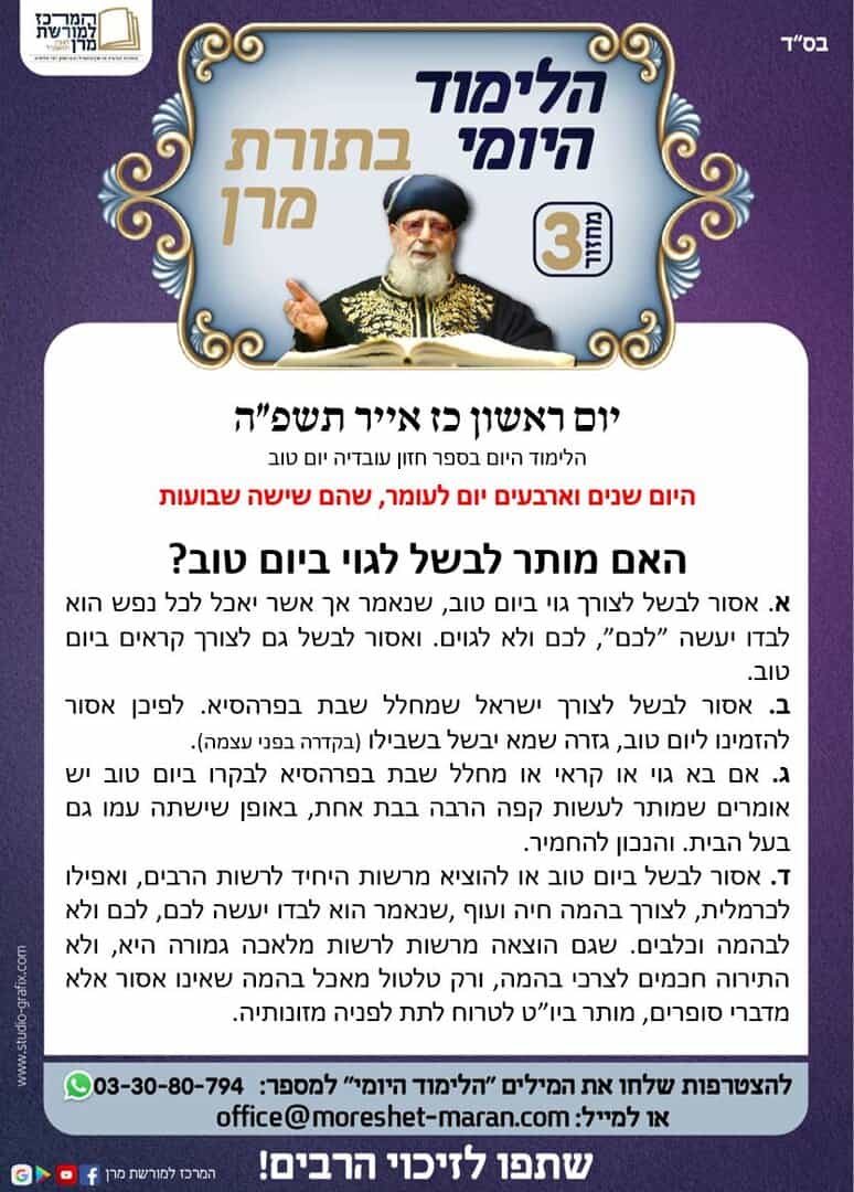 היום נלמד האם מותר לבשל לגוי ביום טוב?