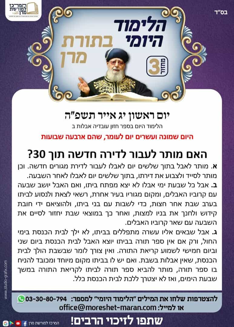 "הלימוד היומי בתורת מרן" נלמד מידי יום ע"י עשרות אלפים ברחבי הארץ והעולם, הצטרפו ללימוד של היום – יום ראשון י"ג אייר ה'תשפ"ה