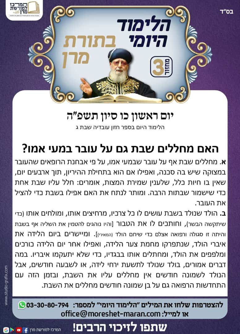 היום נלמד האם מחללים שבת גם על עובר במעי אמו?