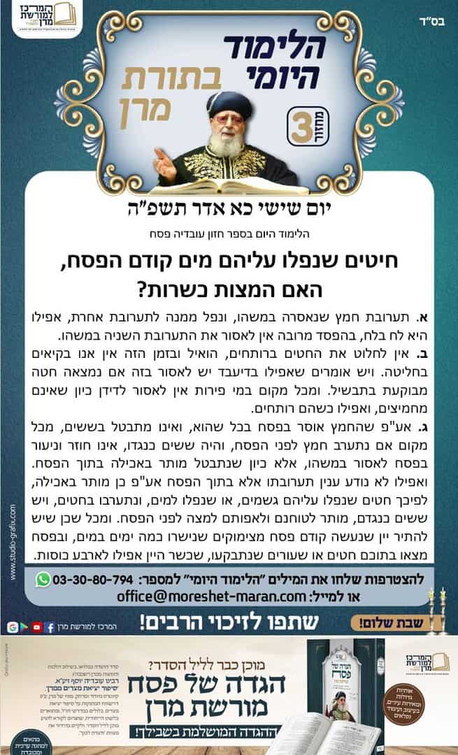 "הלימוד היומי בתורת מרן" נלמד מידי יום ע"י עשרות אלפים ברחבי הארץ והעולם, הצטרפו ללימוד של היום – יום השישי כ"א באדר ה'תשפ"ה