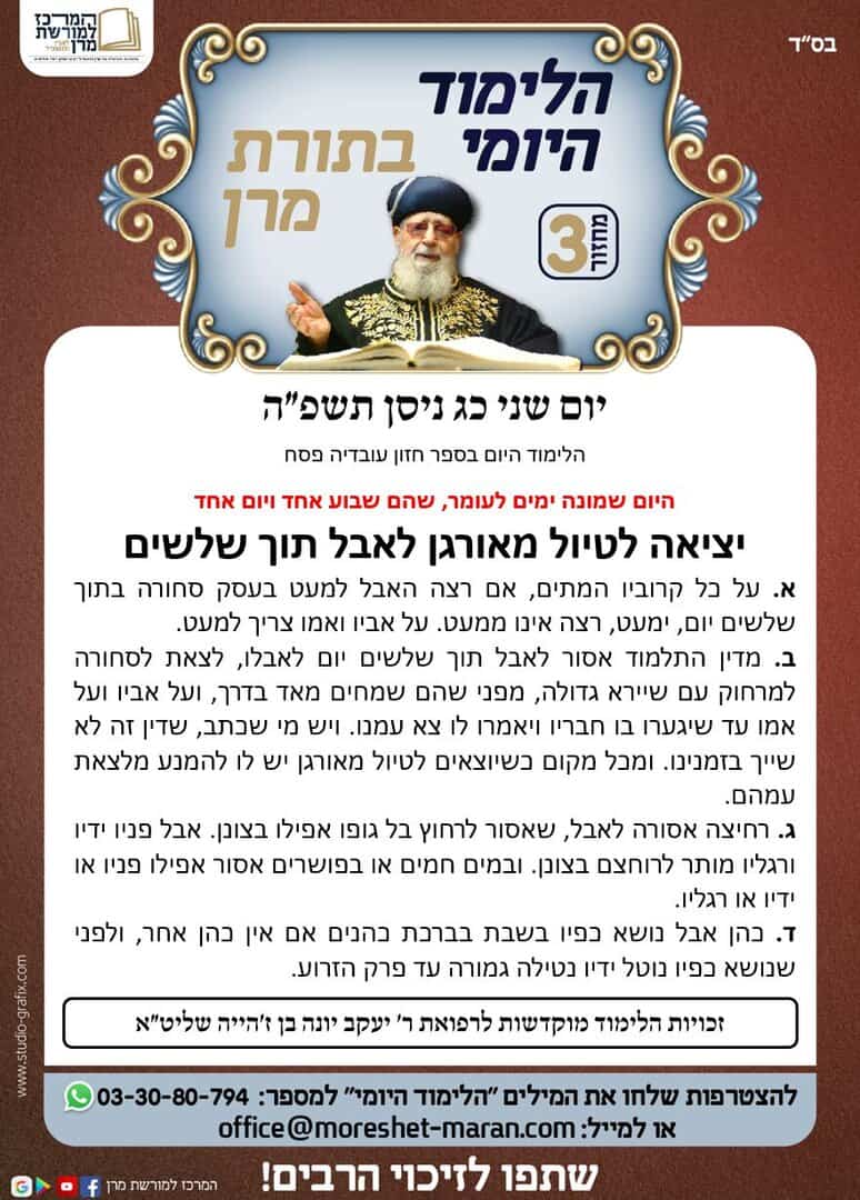 "הלימוד היומי בתורת מרן" נלמד מידי יום ע"י עשרות אלפים ברחבי הארץ והעולם, הצטרפו ללימוד של היום – יום שני כ"ג בניסן ה'תשפ"ה