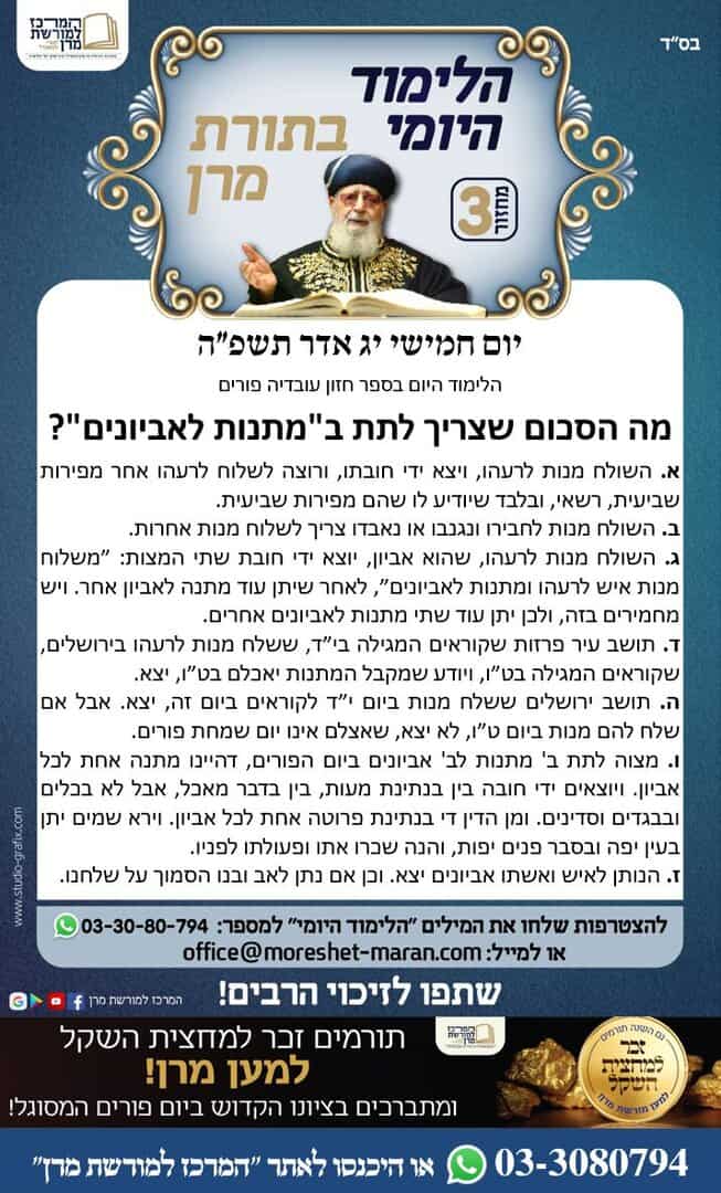 היום נלמד מה הסכום שצריך לתת ב"מתנות לאביונים"?