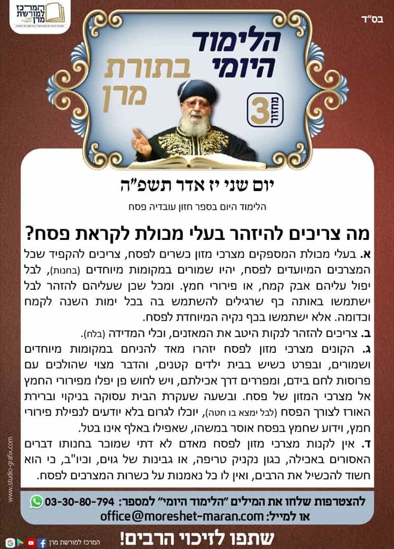 "הלימוד היומי בתורת מרן" נלמד מידי יום ע"י עשרות אלפים ברחבי הארץ והעולם, הצטרפו ללימוד של היום – יום שני י"ח באדר ה'תשפ"ה