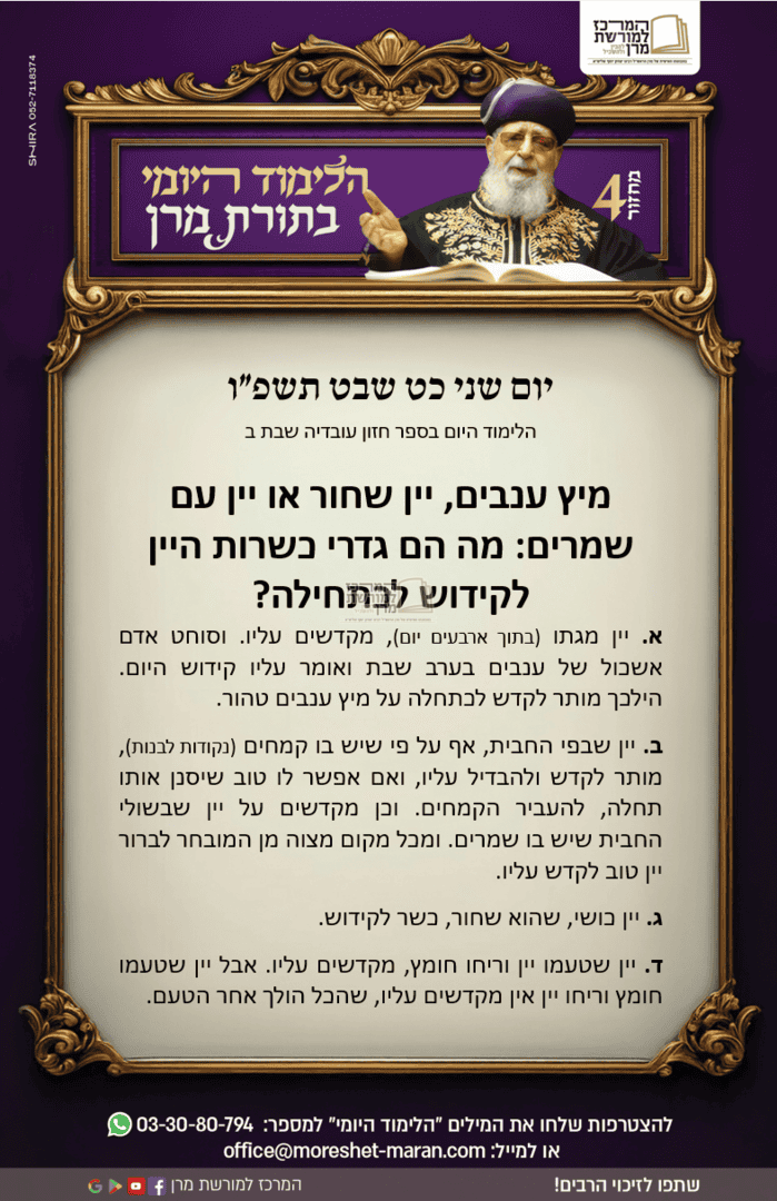 "הלימוד היומי בתורת מרן" הנלמד מידי יום ע"י עשרות אלפים ברחבי הארץ והעולם, הצטרפו ללימוד של היום – יום שני כ"ט בשבט ה'תשפ"ו