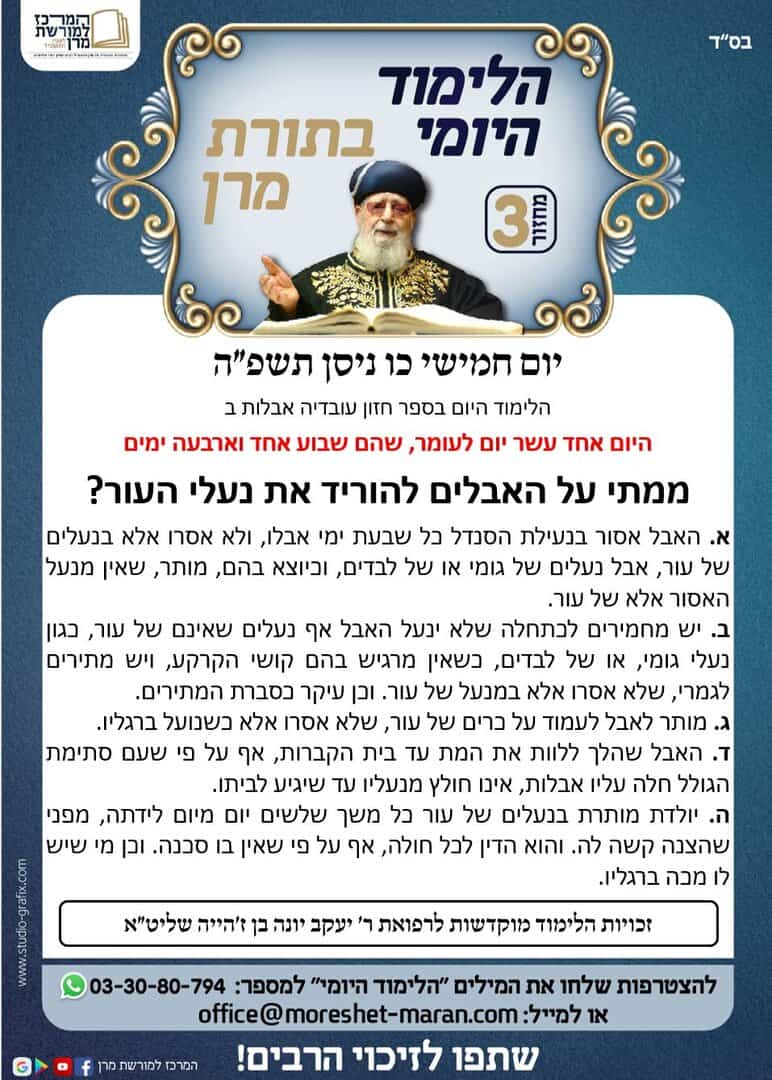 "הלימוד היומי בתורת מרן" נלמד מידי יום ע"י עשרות אלפים ברחבי הארץ והעולם, הצטרפו ללימוד של היום – יום חמישי כ"ו בניסן ה'תשפ"ה