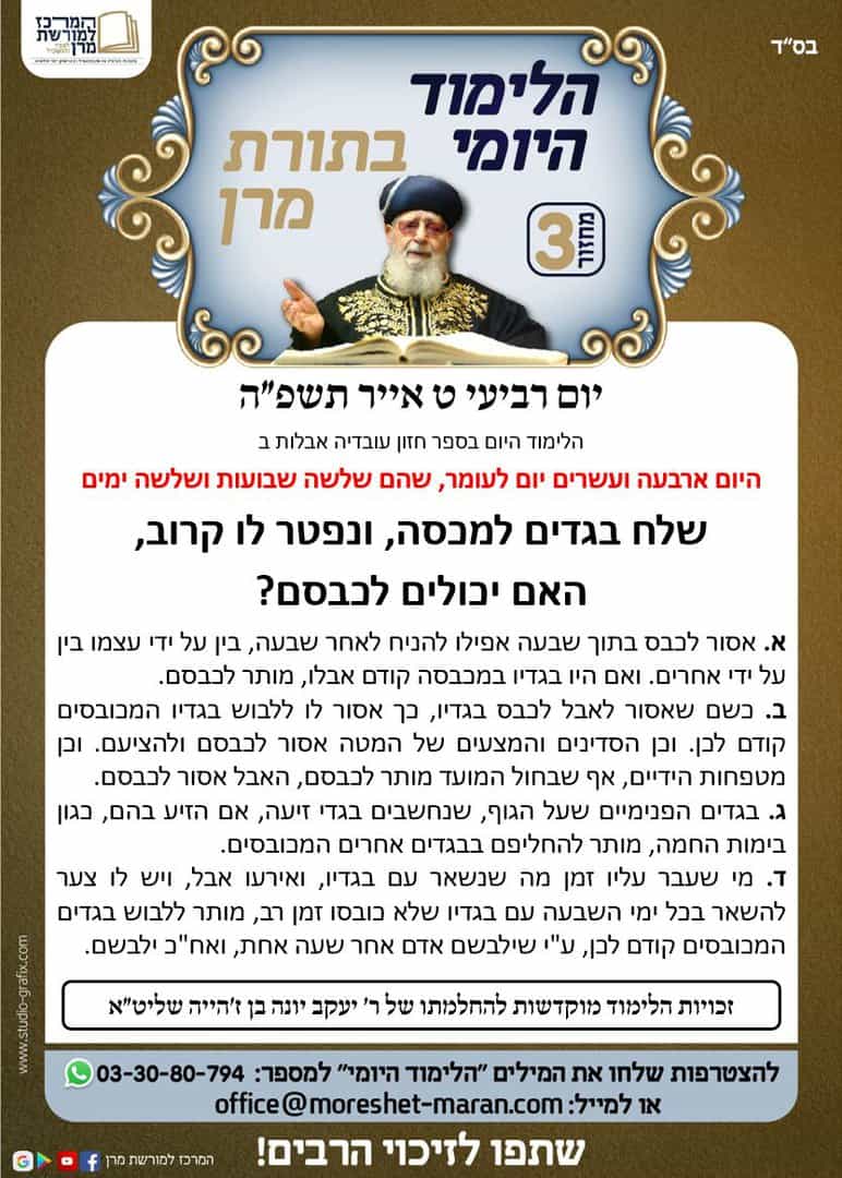 "הלימוד היומי בתורת מרן" נלמד מידי יום ע"י עשרות אלפים ברחבי הארץ והעולם, הצטרפו ללימוד של היום – יום רביעי ט' אייר ה'תשפ"ה