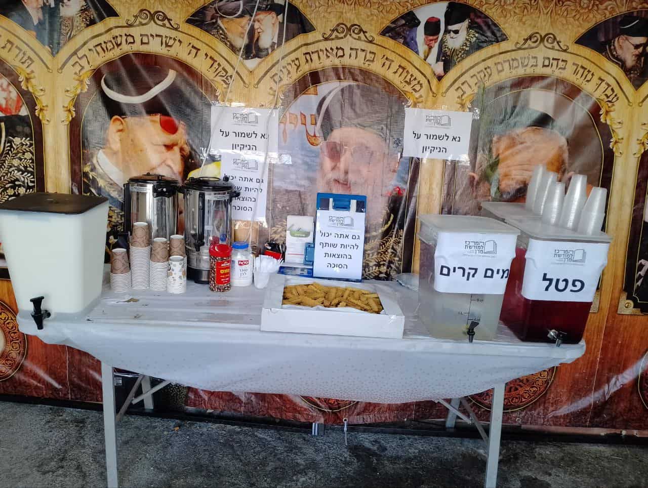 בפעילות הברוכה של העמותה הוקמה גם השנה סוכת הכנסת אורחים שפועלת מסביב לשעון במשך 24 שעות בכל ימי חול המועד סוכות עם שתייה קרה וחמה עוגיות ועוד כיבוד עשיר שמתחלף בתדירות גבוהה.