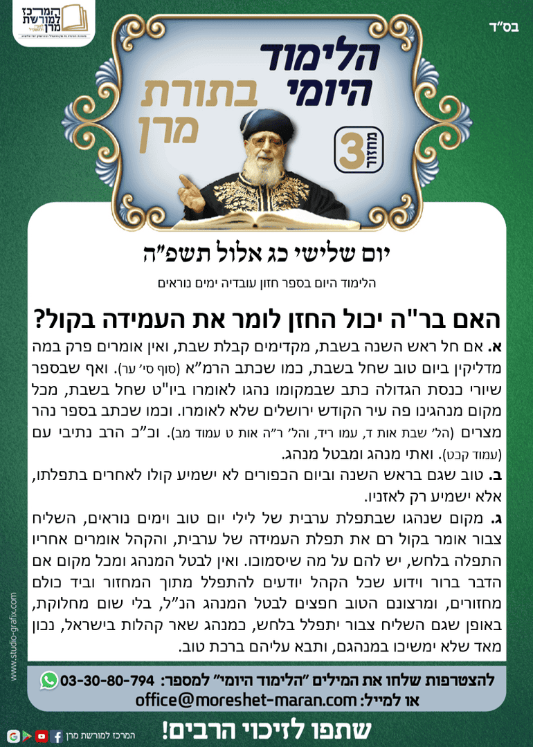 האם בר"ה יכול החזן לומר את העמידה בקול? | הלימוד היומי בתורת מרן