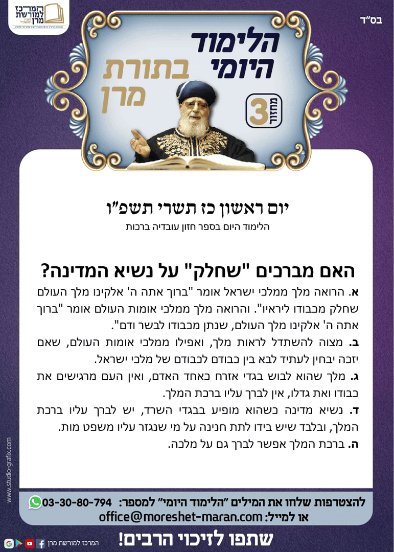 האם מברכים "שחלק" על נשיא המדינה? | הלימוד היומי בתורת מרן