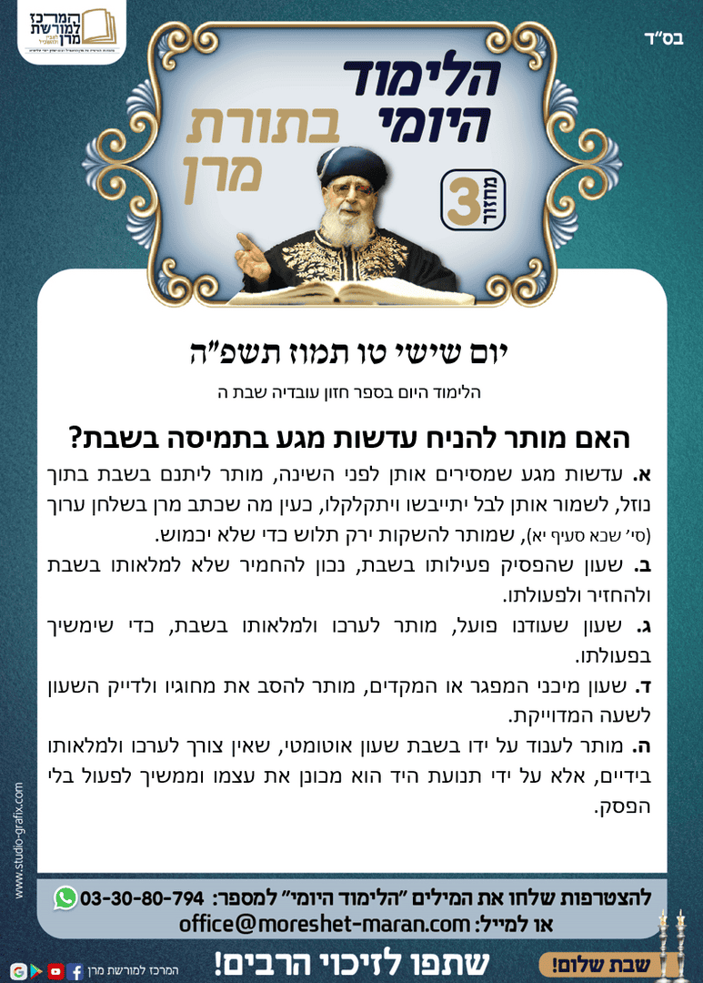 "הלימוד היומי בתורת מרן" נלמד מידי יום ע"י עשרות אלפים ברחבי הארץ והעולם, הצטרפו ללימוד של היום – יום השישי ט"ו תמוז ה'תשפ"ה