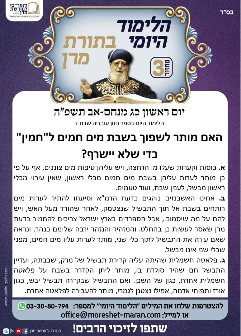היום נלמד האם מותר לשפוך בשבת מים חמים ל"חמין" כדי שלא יישרף?
