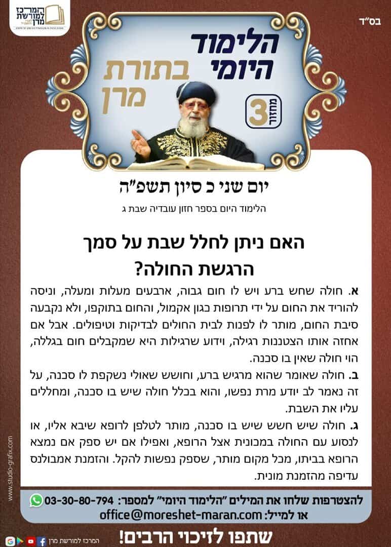 היום נלמד האם ניתן לחלל שבת על סמך הרגשת החולה?