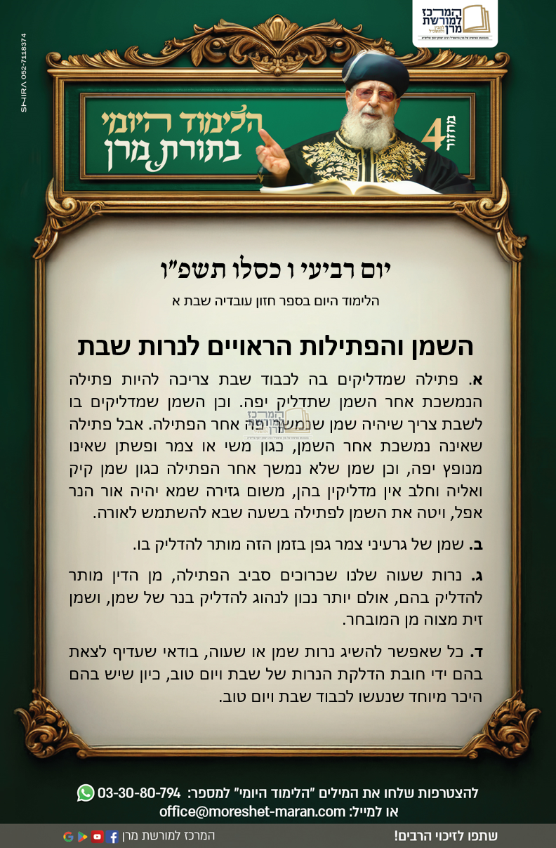 "הלימוד היומי בתורת מרן" הנלמד מידי יום ע"י עשרות אלפים ברחבי הארץ והעולם, הצטרפו ללימוד של היום – יום רביעי ו' כסלו ה'תשפ"ו