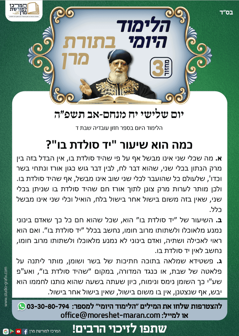 היום נלמד כמה הוא שיעור "יד סולדת בו"?