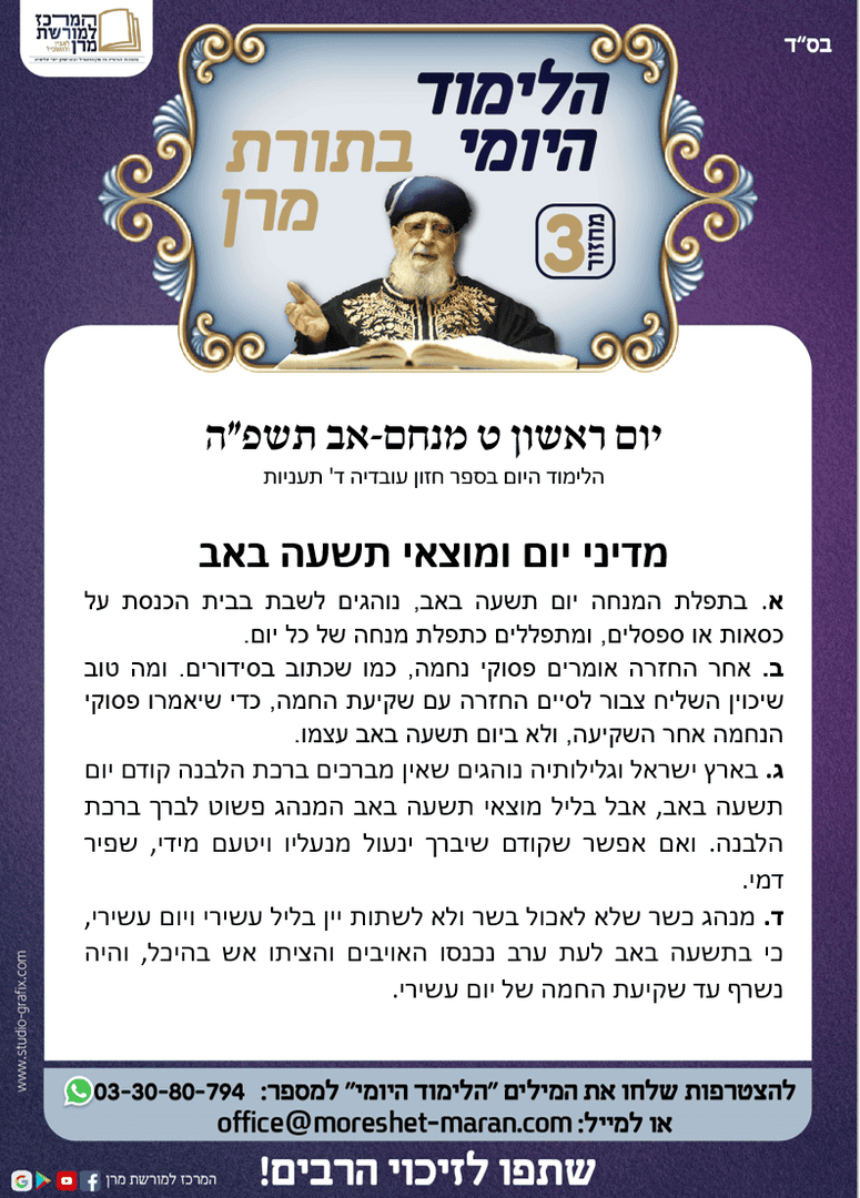 "הלימוד היומי בתורת מרן" נלמד מידי יום ע"י עשרות אלפים ברחבי הארץ והעולם, הצטרפו ללימוד של היום – יום ראשון ט' מנחם אב ה'תשפ"ה