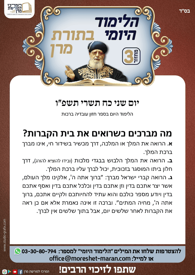 מה מברכים כשרואים את בית הקברות? | הלימוד היומי בתורת מרן