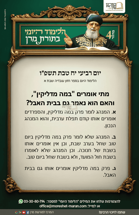 היום נלמד מתי אומרים "במה מדליקין", והאם הוא נאמר גם בבית האבל?