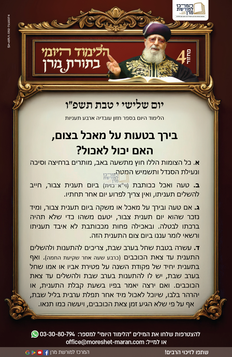 היום נלמד בירך בטעות על מאכל בצום, האם יכול לאכול?