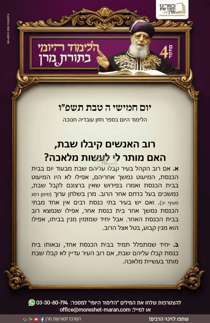 "הלימוד היומי בתורת מרן" הנלמד מידי יום ע"י עשרות אלפים ברחבי הארץ והעולם, הצטרפו ללימוד של היום – יום חמישי ה' טבת ה'תשפ"ו
