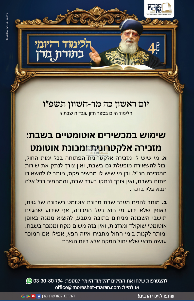 היום נלמד שימוש במכשירים אוטומטיים בשבת: מזכירה אלקטרונית ומכונת אוטומט