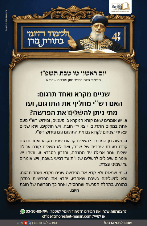 היום נלמד שניים מקרא ואחד תרגום: האם רש"י מחליף את התרגום, ועד מתי ניתן להשלים את הפרשה?