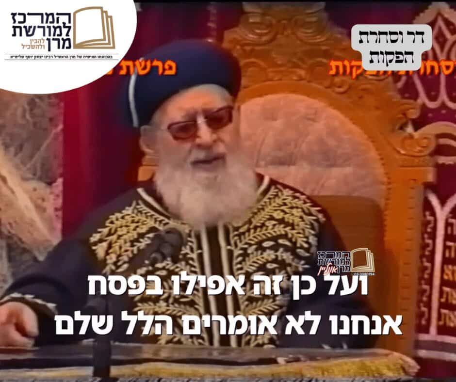 למה אומרים בחנוכה הלל שלם? מרן רבינו עובדיה יוסף עונה!