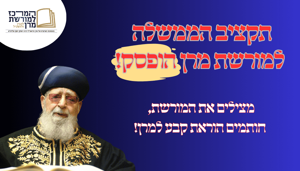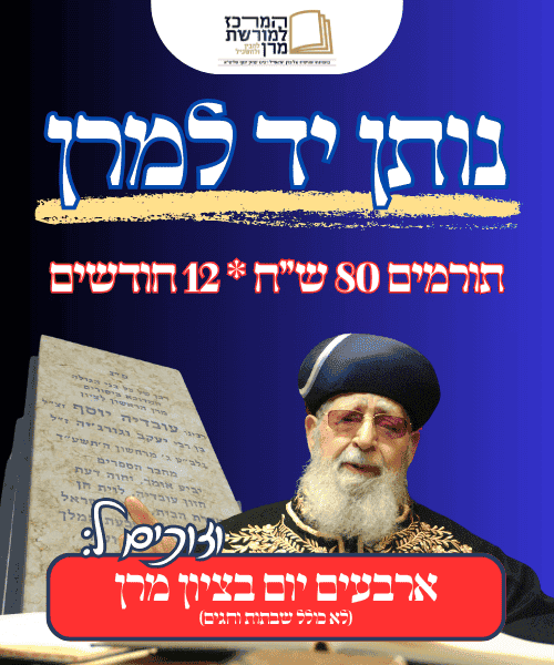 נמצאים אנו ביישורת האחרונה של קמפיין ההתרמה למען "המרכז למורשת מרן", בו אתם תקבעו את האפשרות וגודל הפעילות אותו יוכל המרכז למורשת מרן להוציא לפועל בשנה הקרובה. מתגייסים עכשיו למען מרן, ותורמים להנצחת מורשתו. להלן מספר אפשרויות תרומה, כאשר מתן שכרה בצידה: לתרומות חד פעמיות, וצפייה בסרטון ההסברה לקמפיין ולכל אפשרויות התרומה לחצו כאן […]