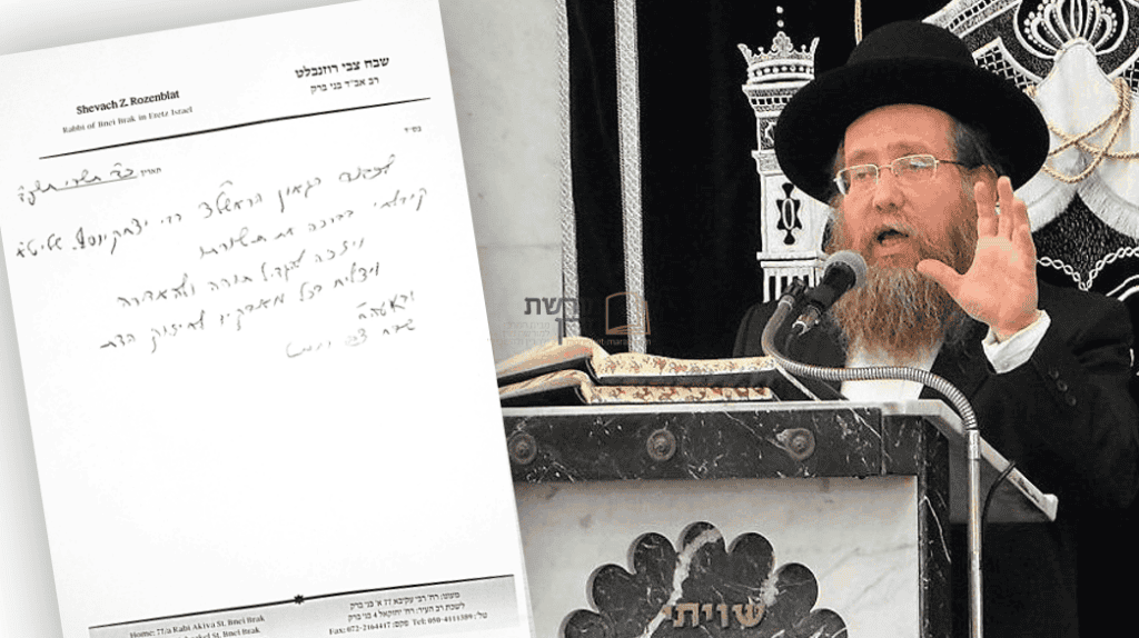 ביום שישי האחרון ערב שבת קודש פרשת בראשית תשפ"ב (כד תשרי) קיבל רבה הליטאי של העיר "בני ברק" הגאון הרב שבח צבי רוזנבלט שליט"א ספר "ילקוט יוסף" עם הקדשה ממרן שליט"א. לאחר מכן כתב רב העיר "בני ברק" מכתב למרן שליט"א בו הוא מברכו על קבלת הספר ומחזקו על מאבקיו לחזוק הדת. זה לשון המכתב: לכבוד […]