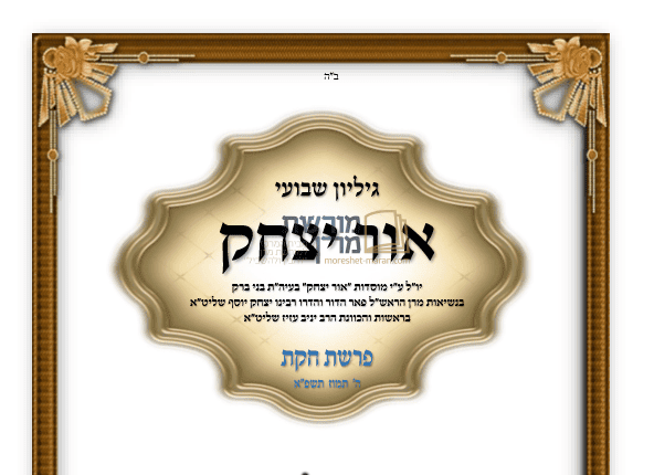 גיליון אור יצחק | פרשת חוקת | תשפ"א | לצפיה הורדה