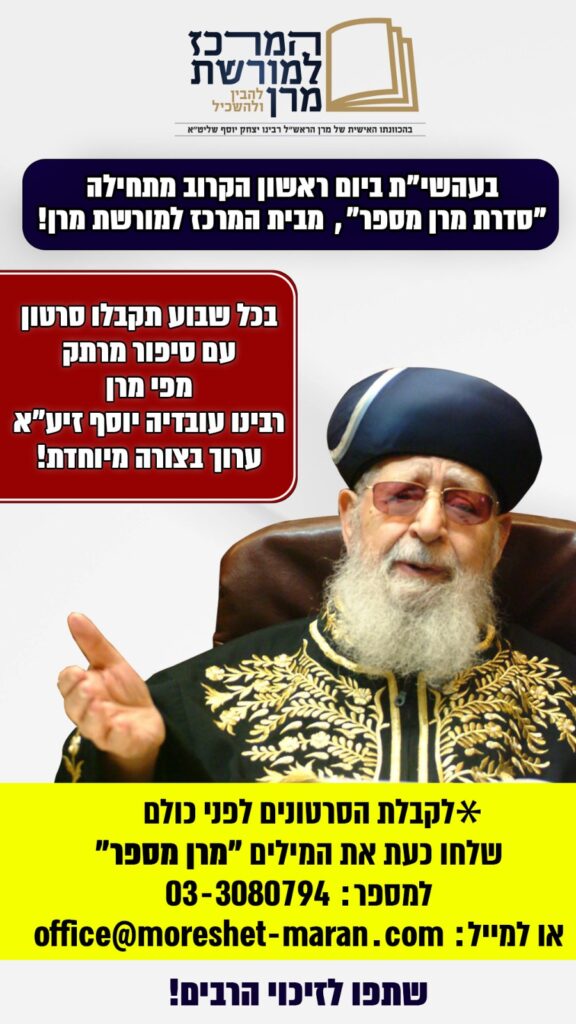 החל מיום ראשון הקרוב: סדרת "מרן מספר" – סיפורים מרתקים מפי מרן! הירשמו כעת
