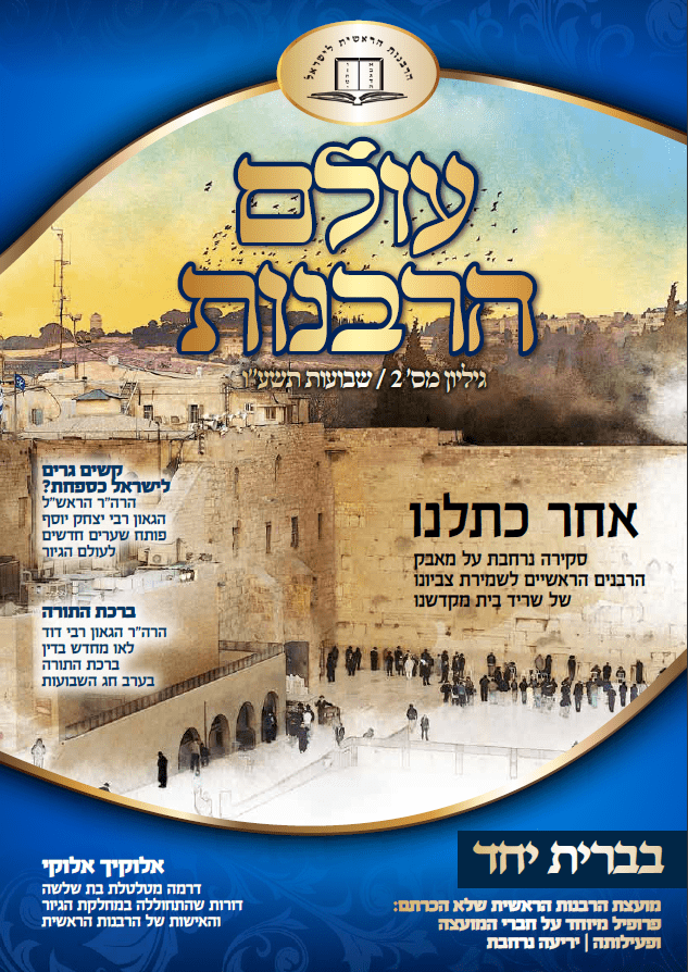 חוברת עולם הרבנות, בהוצאת הרבנות הראשית לישראל, גליון מספר 1. לצפיה לחץ כאן