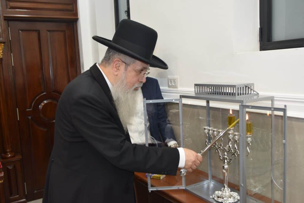 ראש מוסדות הליכות משה ורבה של רמת אהרון הגאון הגדול רבי שבתי לוי שליט״א בהדלקת נרות חנוכה בבית מדרשו.
