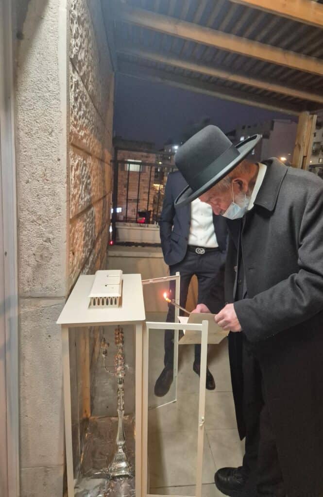 מרא דאתרא שכונת שמואל הנביא הגאון הצדיק רבי יצחק כהן שליט"א בהדלקת נרות חנוכה. צילום: ש.פ.ה