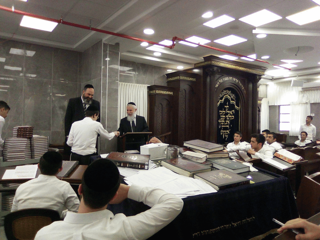 בישיבת 'אבני נזר' חילקו את הספרים של מרן רבינו עובדיה יוסף זיע"א למסיימי המסכת