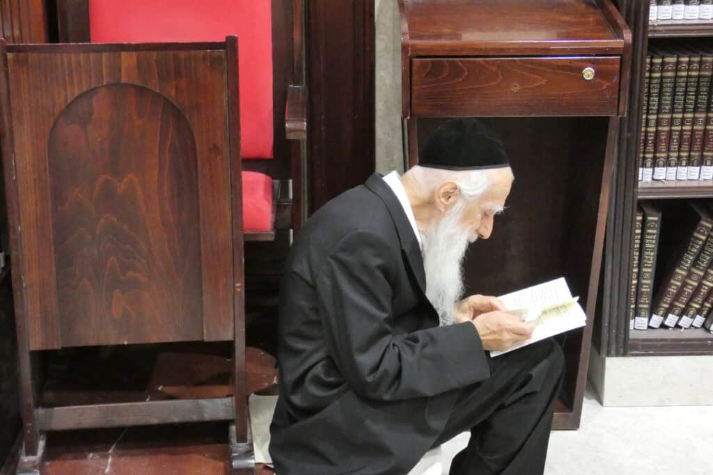 הגאון רבי מסעוד בן שמעון שליט״א רבה של העיר בני ברק באמירת הקינות בבית מדרשו. צילום: איתי קצב