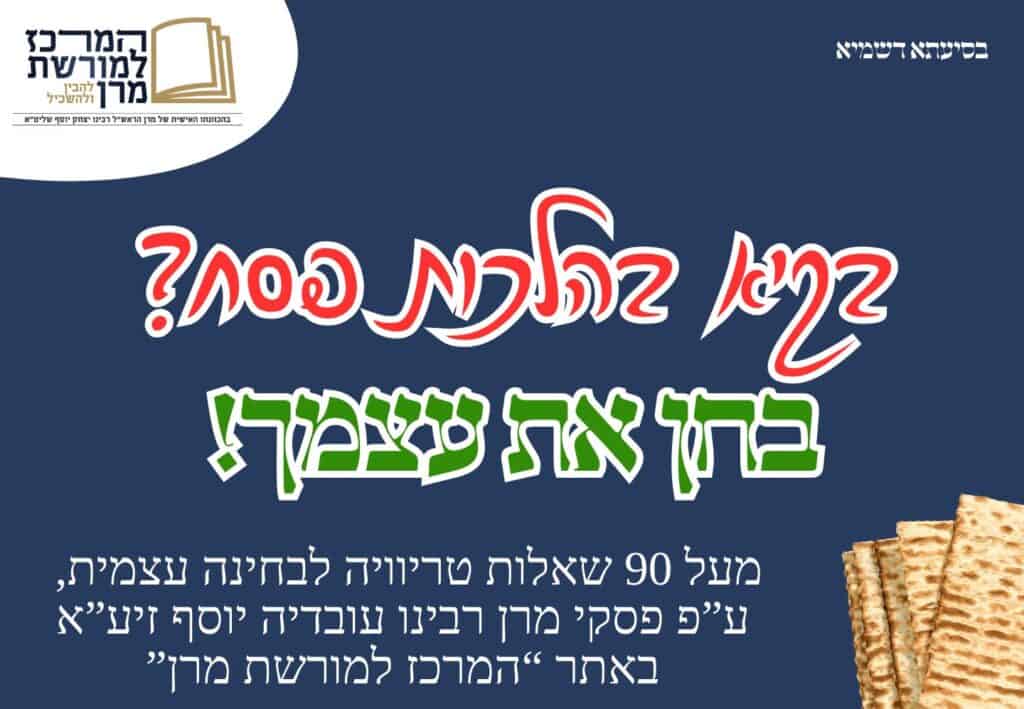למען ידעו: 'המרכז למורשת מרן' מגיש- מבחן טריוויה מקיף בהלכות פסח לפי פסקי מרן זיע"א