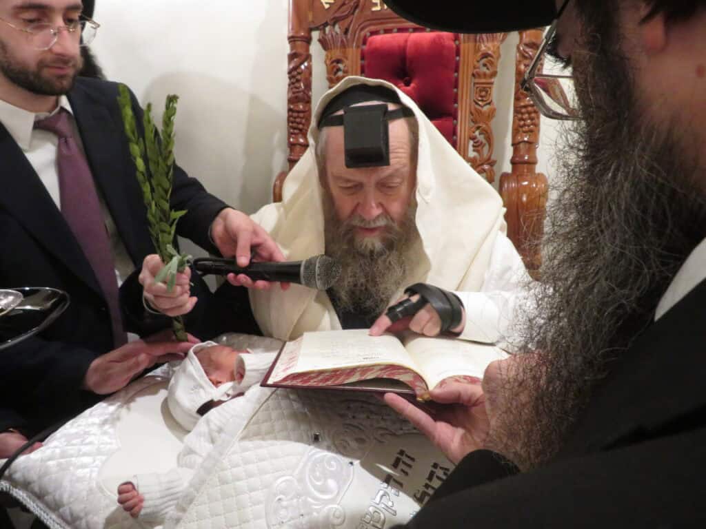 שמחת הברית לנין זקן המקובלים הגה"צ רבי דוד בצרי שליט"א ראש ישיבת 'השלום' בירושלים, נכד לחתנו הגאון רבי יוסף פנחסי שליט"א ראש כולל האר"י בב"ב ונכד הרב חיים בן שמואל ר"מ בישיבת עטרת יואל בב"ב. בהשתתפות המוהל הגאון רבי לוי פנחסי שליט"א ראש ישיבת 'אור אברהם'. צילום: ש.פ.ה