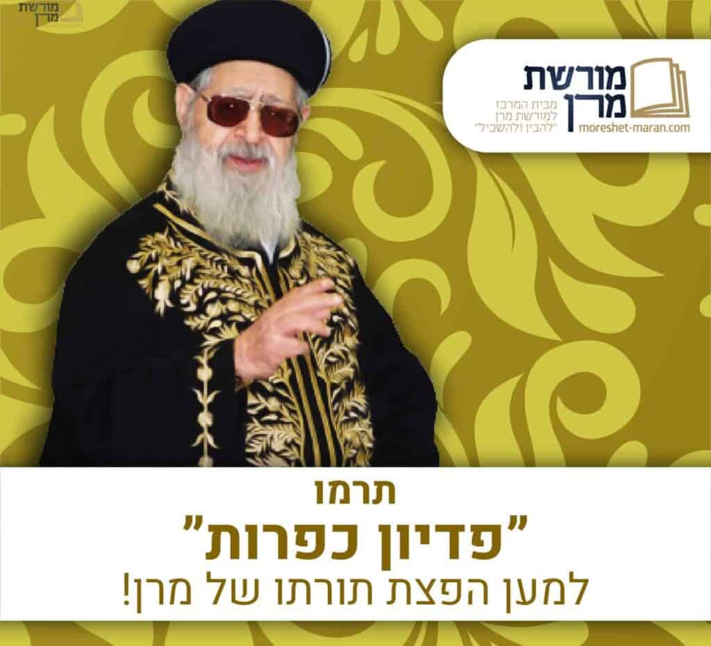 פדיון כפרות – נותנים למען מורשתו של מרן!