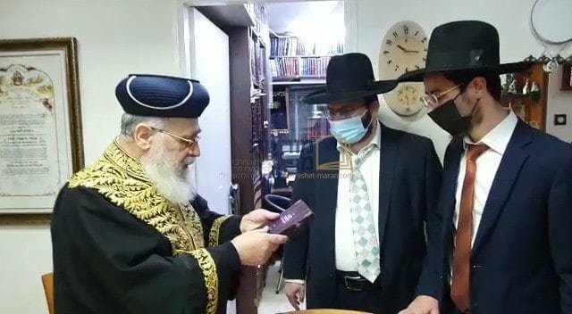 פורים משולש: מרן הראש"ל של את ספרו החדש אל הגרב"צ מוצפי