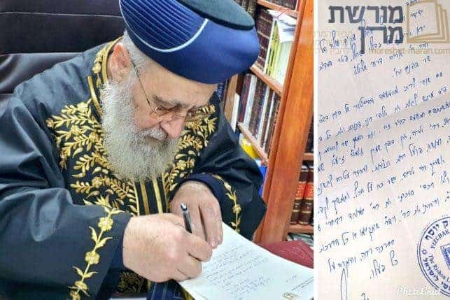 לאחר סיום השס המרכזי שלח מכתב מרן הראשל"צ הגר"י יוסף לשר הרב אריה דרעי