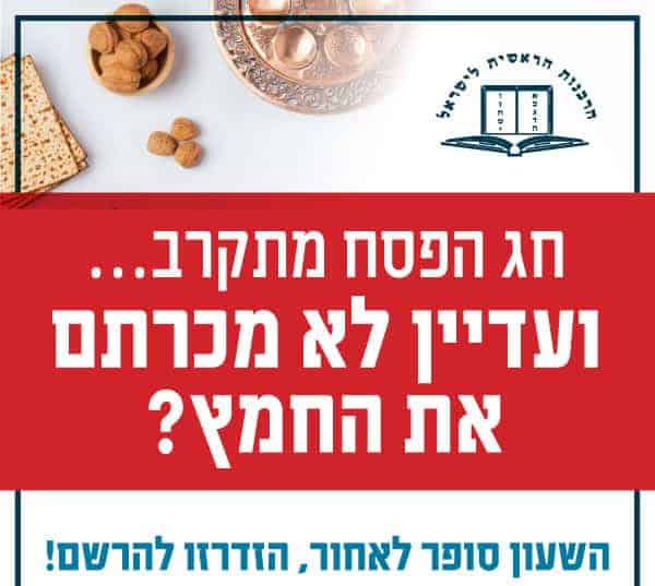 מכירת חמץ אונליין דרך הרבנות הראשית לישראל – שנת תשע"ט