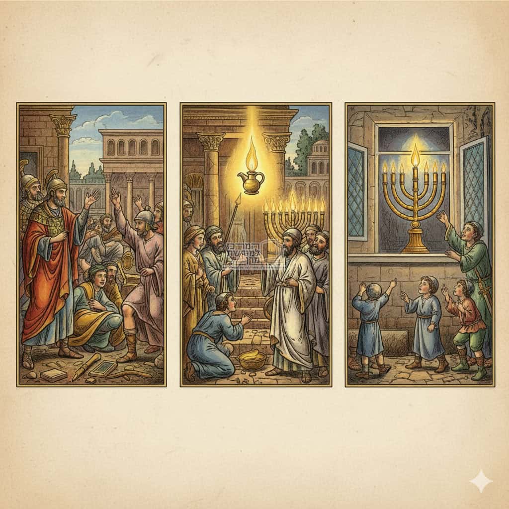 חנוכה: גזירות מלכי יוון, נס פך השמן ותקנת ההדלקה לפרסם הנס | הלימוד היומי בתורת מרן