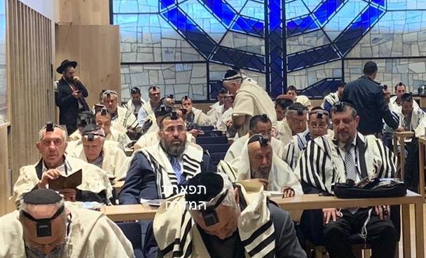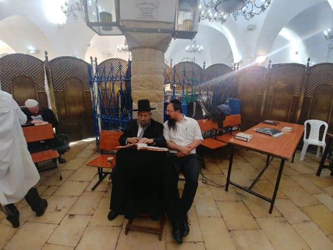 רבה של יוקנעם הגאון הרב מיכאל ועקנין שליט"א כעת בתפילה בציון הרשב"י במירון