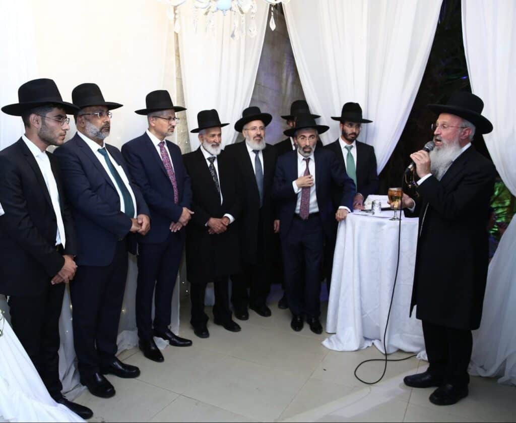 ביום חמישי נערך באולמי כתר הרימון שמחת החתונה לבתו של מזכה הרבים הרב מיכאל לסרי שליט"א עם בנו של הרב ראובן צרף שליט"א בחתונה השתתפו אישי ציבור ורבנים (קרדיט: תמונות תפארת המזרח בטוויטר)